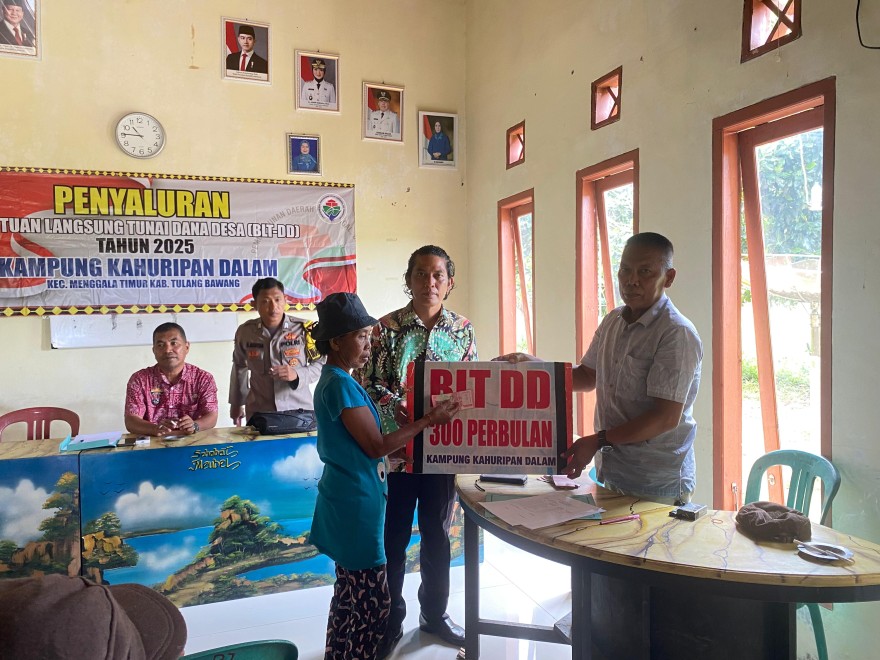 Pemerintah Kampung Kahuripan Dalam melaksanakan program pembagian Bantuan Langsung Tunai Dana Desa (BLT DD) Pada Hari, Kamis 04 September 2025 Tahap III bulan Juli-September 2025 kepada masyarakat kurang mampu. Kegiatan ini di hadiri oleh Aparatur Kampung, Ketua BPK (I Wayan Hartana), Babhin Kamtibmas (Birigpol Rollis Aditya), dan Linmas Kampung kahuripan dalam, Program ini bertujuan untuk meningkatkan kesejahteraan masyarakat dan membantu mereka dalam memenuhi kebutuhan sehari-hari.